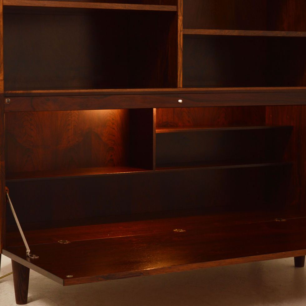 Bibliothèque en palissandre vintage éditée au Danemark dans les années 60 par Omann Jun Møbelfabrik A/S.