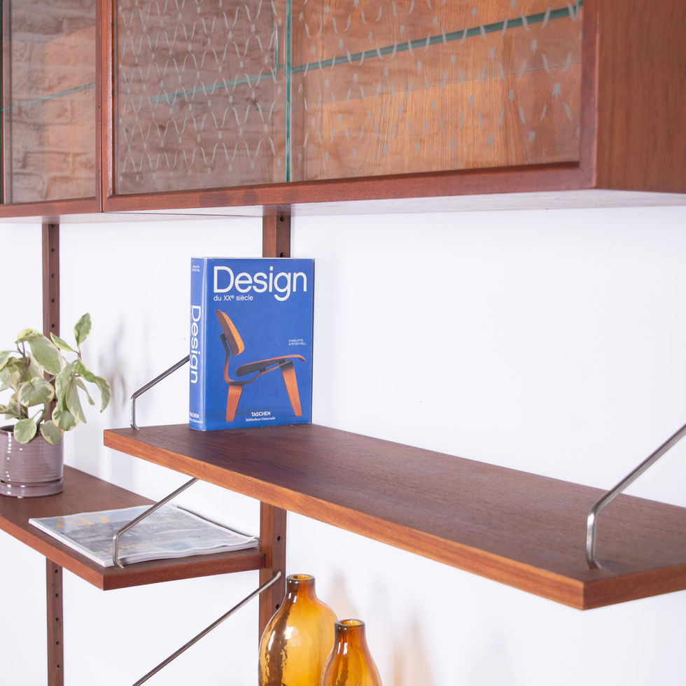 Superbe système d'étagères suspendues en teck dessiné par le designer danois Poul Cadovius et édité par ROYAL SYSTEM dans les années 60.