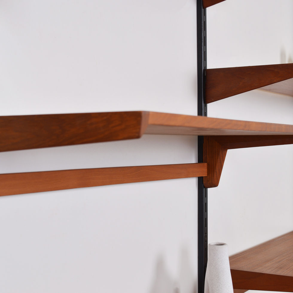 Système mural suspendu en teck dessiné par le designer danois Kai Kristiansen et édité par Feldballes Møbelfabrik (Danemark 1960).