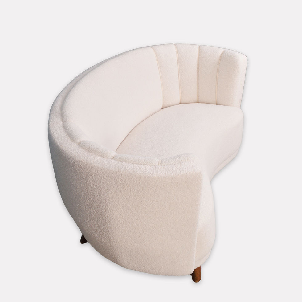 Canapé courbé scandinave - tissu bouclette écru - 1930