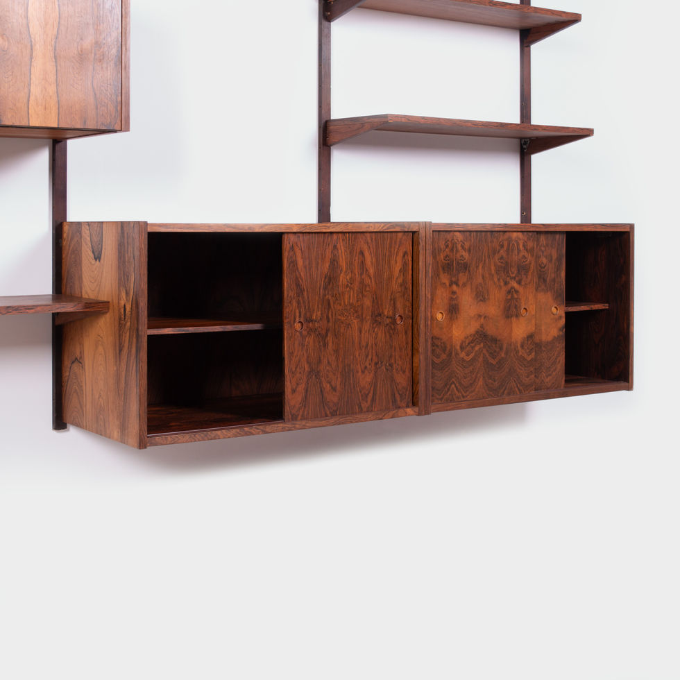 Système modulable mural en palissandre dessiné et édité par PS System Randers dans les années 60.