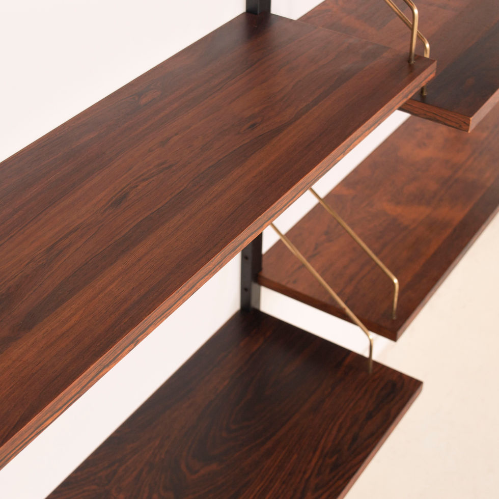 Système modulable mural en palissandre dessiné et édité par PS System Randers dans les années 60.