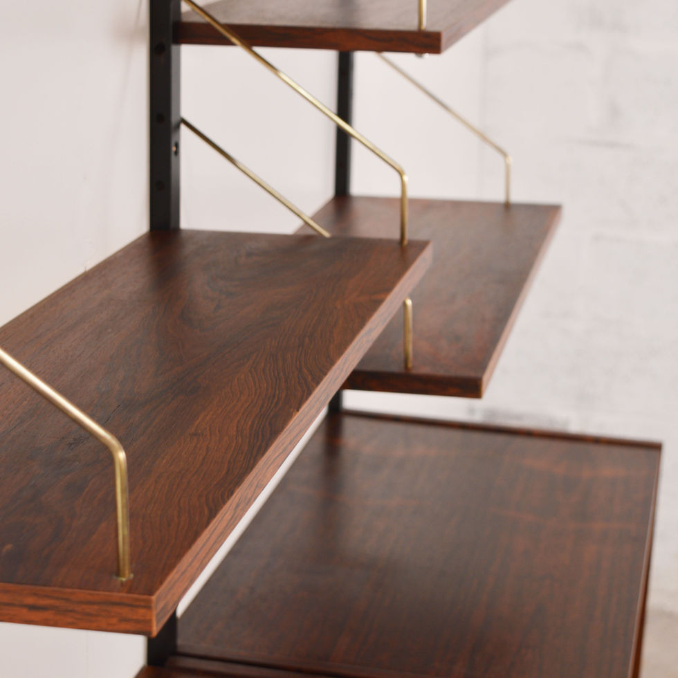 Système modulable mural en palissandre dessiné et édité par PS System Randers dans les années 60.